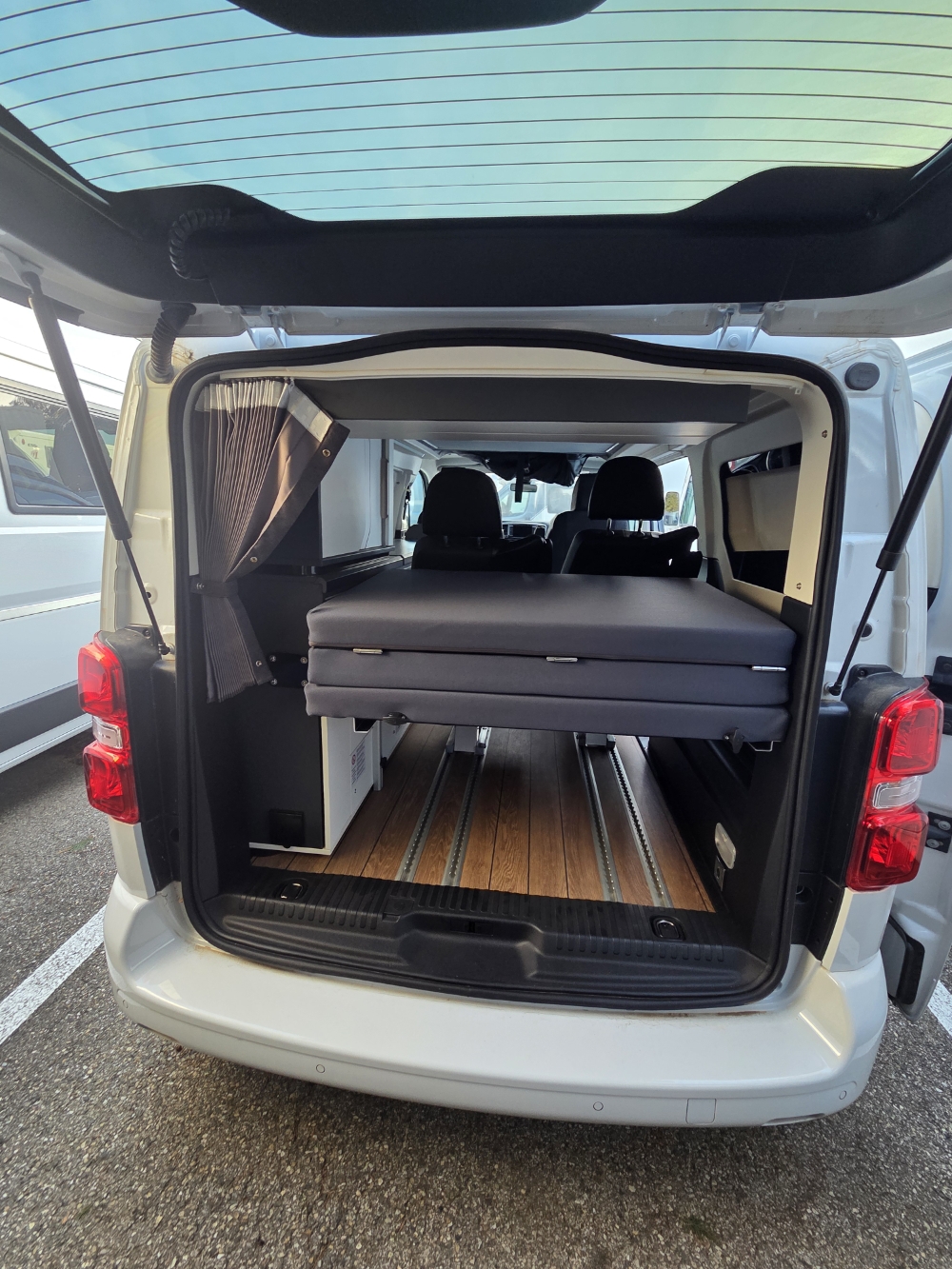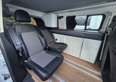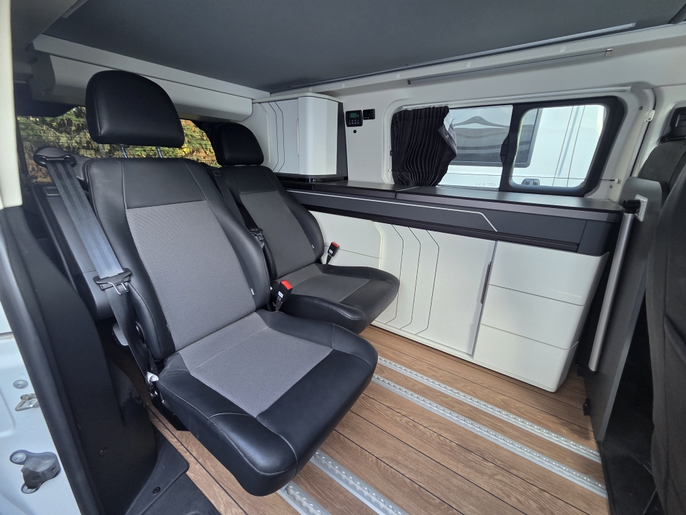 Capacité 4 personnes : Rare sur un van, 4 places route et 4 couchages fixes.